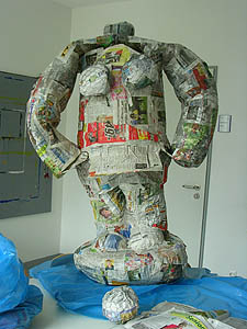 Die fertige Pappmachée-Figur wurde vor ihrer farblichen Geburt noch einmal mit Gips verstärkt.