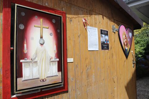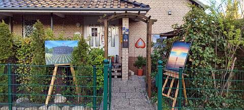 Der Tomatenunterstand diente diesmal als Ausstellungsfläche für meine Zeichnungen