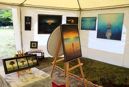 Eva Rüggeberg bot Wollwaren an an ihrem Stand mit Kirsten Pech und Alexandra Kelpin, die Seife, Aquarelle, Tuschezeichnungen und Bronzeschmuckstücke dabei hatten
