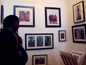 Shiri Achu vom Stand gegenüber die mit ihren afrikanischen Drucken jede Menge kaufinteressierte Kunden um sich scharte