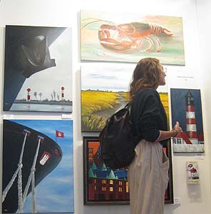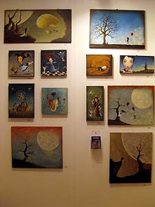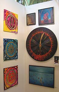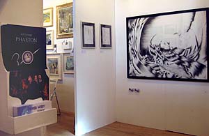 links die Werke von Stefanie Herr die mit einem ihrer topographischen Fine Art Werke die Ausstellung bewarb und rechts Yeowoon Kim aus Süd Korea