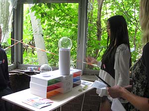 Dieses Mädchen von der Schule am Schloss stellte uns vor, wie sich ihre Klasse für die Zukunft die Nutzung des Radargebädes vorstellt. Kunst hat da ganz viel Platz!