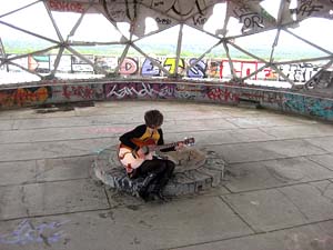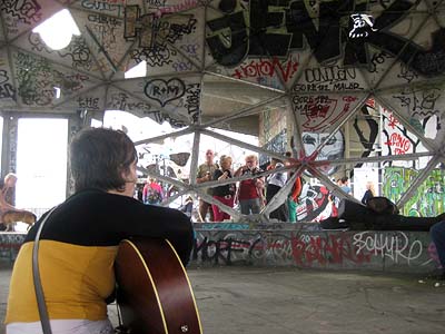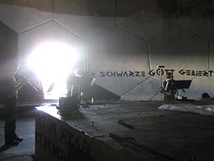 Immer wieder wurden Besuchergruppen von den Jungs von der Security durchgeführt, die dann ein wenig Zeit hatten, sich auch unseren Werken zu widmen... oder zu tanzen...